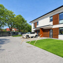 • Działka o powierzchni 233 m² z prywatnym ogrodem, który dzięki dużym przeszkleniom salonu stanowi naturalne przedłużenie strefy dziennej.
