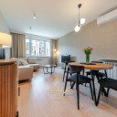 Mieszkanie składa się z holu, oddzielnej sypialni, pokoju dziennego, łazienki, pralni i salonu z aneksem kuchennym. Mieszkanie ma duży balkon oraz północno wschodnią ekspozycję okien, jest wyposażone w szafy, garderoby, w jednej z sypialni jest jest możliwość doposażenia w łóżko lub sofę wg uznania.