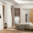 • Okna PCV w dwustronnym laminacie: wewnątrz białe, z zewnątrz w kolorze drewna.
